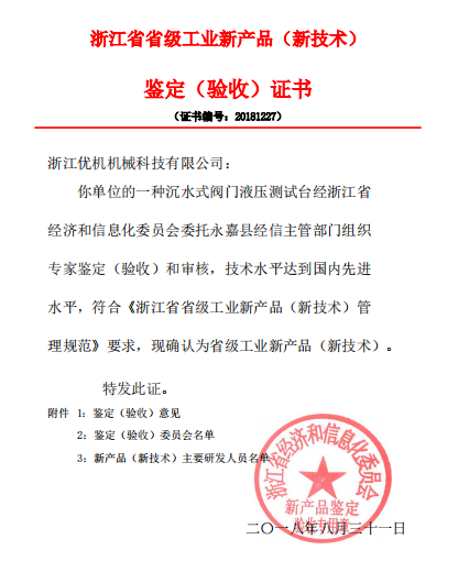 省級(jí)工業(yè)新產(chǎn)品鑒定證書